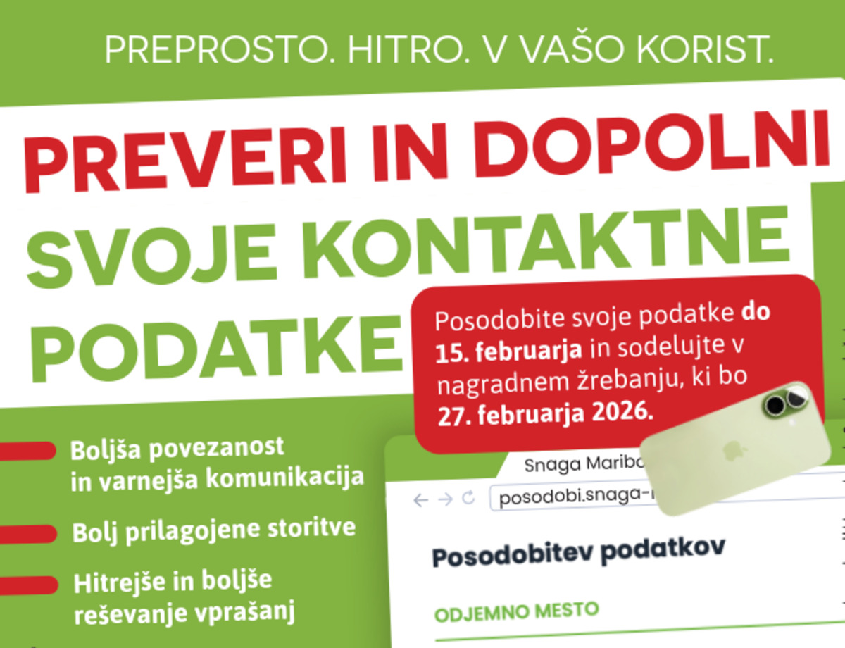 SNAGA MARIBOR: POSODOBITE SVOJE KONTAKTNE PODATKE - ZADNJI ROK 15. FEBRUAR 2026