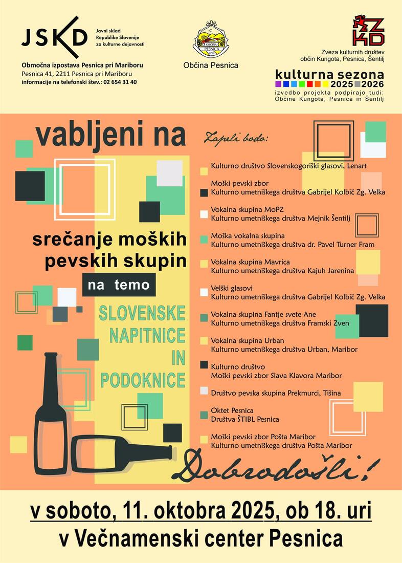 SREČANJE MOŠKIH PEVSKIH SKUPIN NA TEMO - SLOVENSKE NAPITNICE IN PODOKNICE