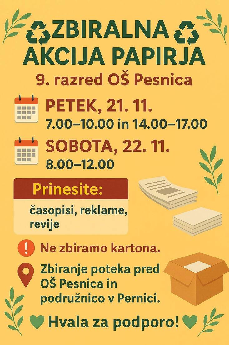 ZBIRALNA AKCIJA PAPIRJA - OŠ PESNICA IN PERNICA