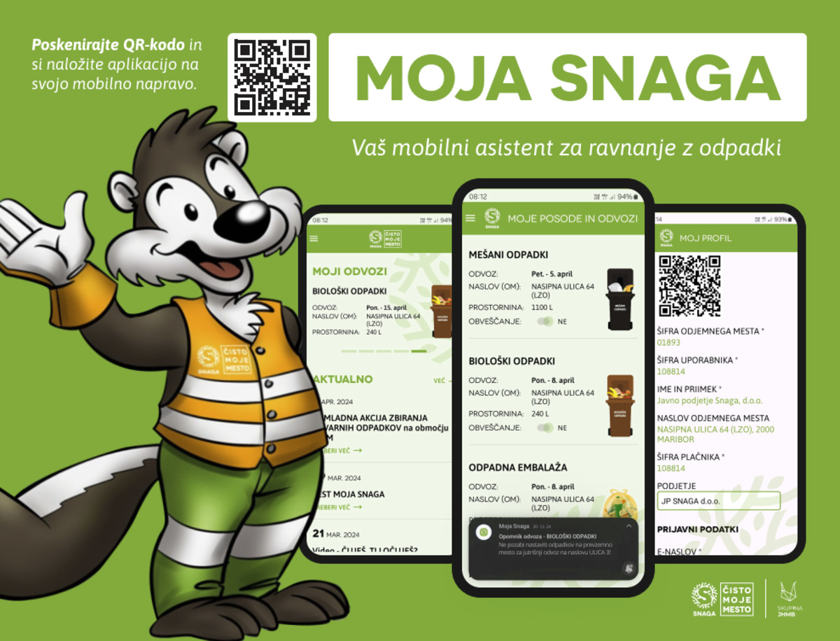 Z uporabo aplikacije MOJA SNAGA prispevate k še bolj urejenemu, preglednemu in okolju prijaznemu ravnanju z odpadki.